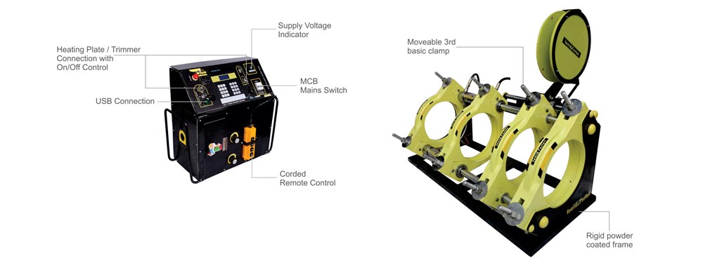 Main Machine Body, Heating Plate with DTC, Trimming Unit, PLC based Electro Hydraulic Unit with USB, Stub end Device, Trimmer / Heating Plate Stand, Reduce Clamp Inserts.